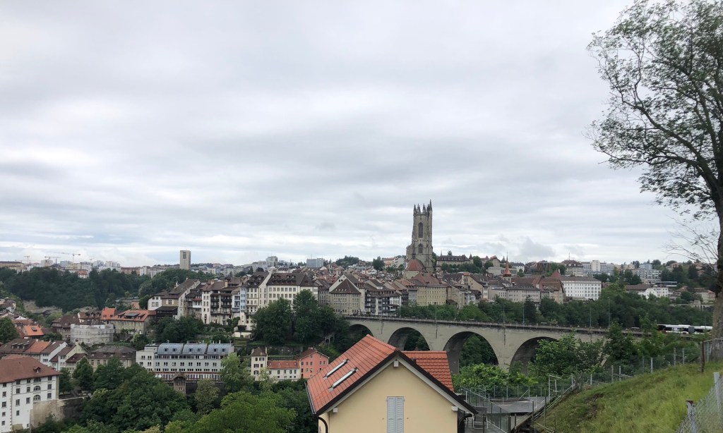 Continuing on we reach the outskirts of Fribourg, capital of the canton of that name.
