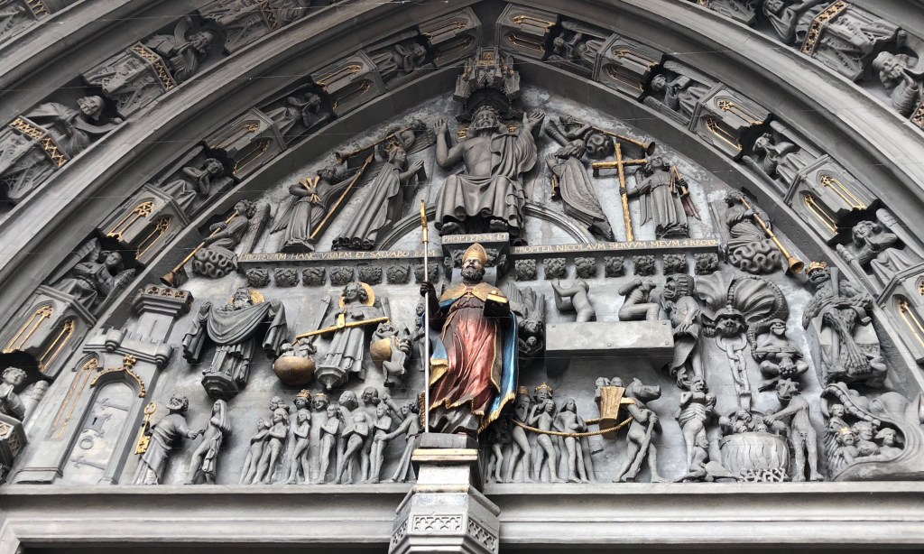 Passing through the heart of the Old Town, with its more than 200 Gothic facades, we pay a visit to the Fribourg Cathedral, dedicated to St. Nicholas, the same Bruder Klaus we got to know back in Flueli-Ranft.