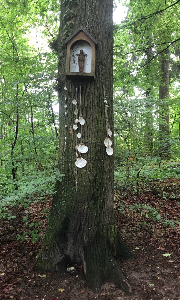 Just inside the forest trail beyond the cross we find a totem to pilgrims obviously made by locals.