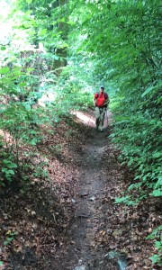 This path appeared to be an old mule trail, with a rocky base and steep sides.