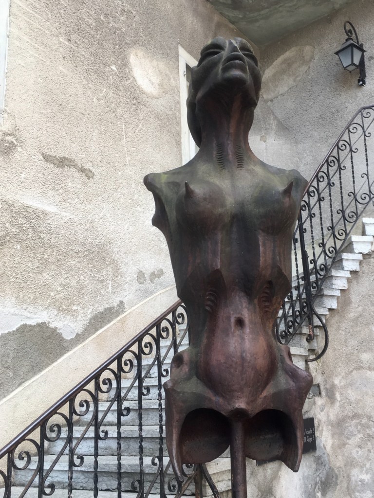 Leaving the castle we walk back into the village center. Could too much cheese cause hallucinations? Walking down from the castle we come across this!