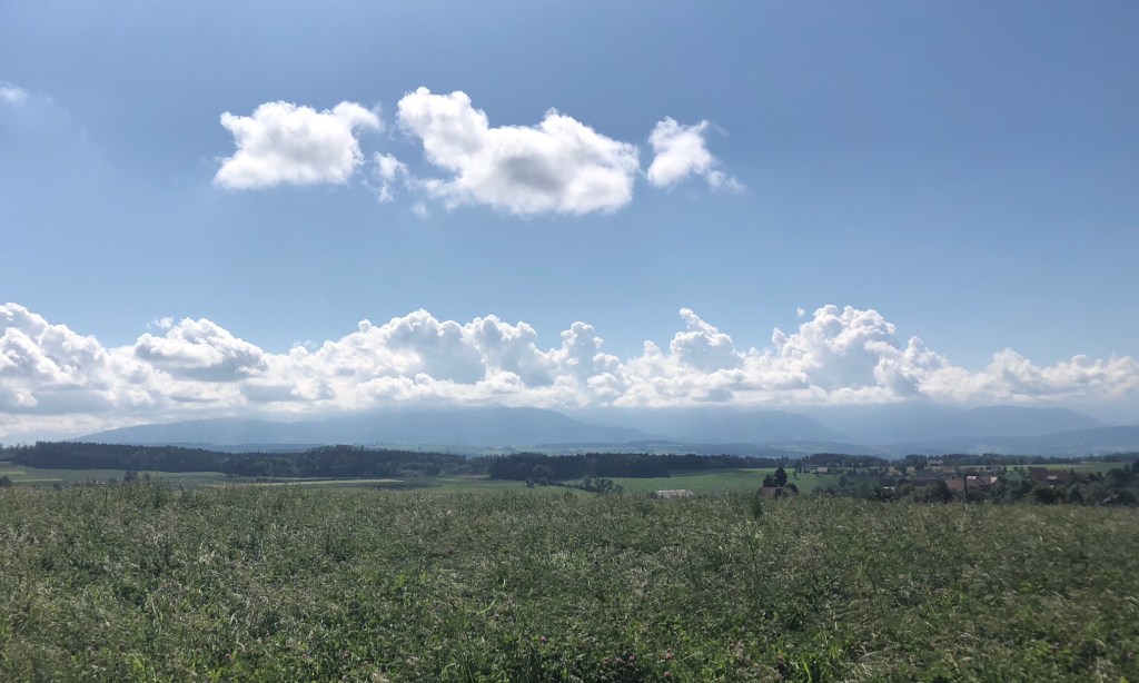 Let’s start with the least favorite (recognizing that the entire walk was amazing, so “least favorite” is relative). Clearly, that was the last 3 days, mainly between Lausanne and Geneva. Why? The landscape, while beautiful, was somewhat monotonous (“boring”, according to our fellow pilgrim Martin). Also, the farm roads were all paved (great for biking, but very hard on the feet) and there was a lot of town, suburban and city walking…and traffic! (We had become used to and spoiled by solitary fields, farm roads and forest trails.)