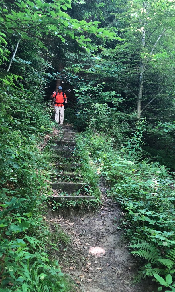 As for challenging, the one day that stands out is the walk between Einsiedeln and Brunnen over the Haggenegg. After a (deceptively!) pleasant walk along the Alp river we came to the very steep and rocky ascent to the top of the pass (~1500 ft. elevation gain).